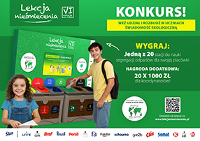 Konkurs „Lekcja Nieśmiecenia” VI przeznaczony jest dla wszystkich placówek oświatowych, nie tylko szkół i przedszkoli, które chcą się zaangażować w działania edukacyjne i proekologiczne. Konkurs rozpoczynamy 16 kwietnia i do 3 czerwca czekamy na Wasze zgłoszenia!